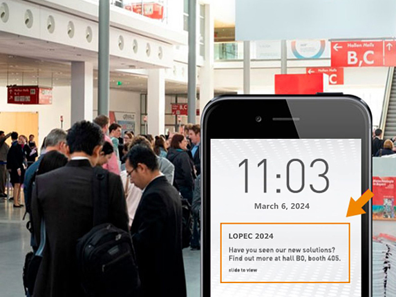 Nutzen Sie die Startseite der LOPEC App, um die Aufmerksamkeit auf sich zu ziehen. Mit dem Werbebanner auf dem Homescreen setzen Sie sich prominent in Szene.